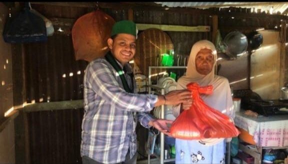 HMI Cabang Lhokseumawe-Aceh Utara Membagikan Paket Sembako Kepada Kaum Dhuafa