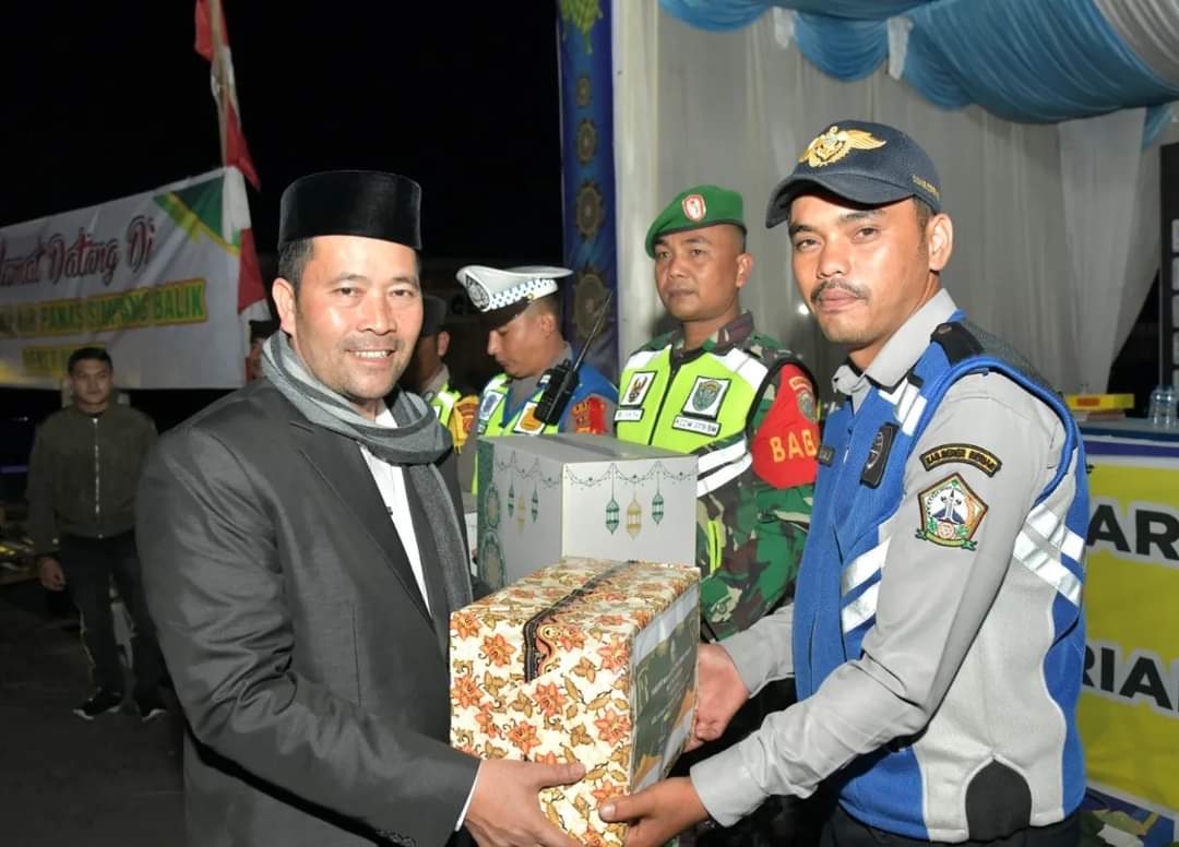 “ Tetap semangat bertugas ”, ucap Haili Yoga menyapa para petugas yang terdiri dari satuan Polri, TNI, Dinas Perhubungan, dan Petugas Kesehatan itu. lebih lanjut Ia mengucapkan terima kasih atas dedikasi para petugas dilapangan dalam mengamankan para pemudik, karena harus berpisah dari keluarga dalam momen perayaan hari besar ini.
