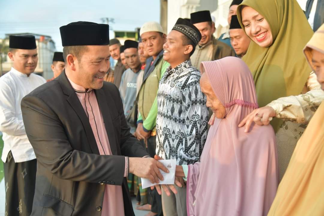 Tepat berada di pelataran Masjid Agung Babussalam, Haili Yoga juga menyerahkan santunan sumbangan ASN tersebut kepada Masyarakat Fakir miskin di sekitar Masjid.