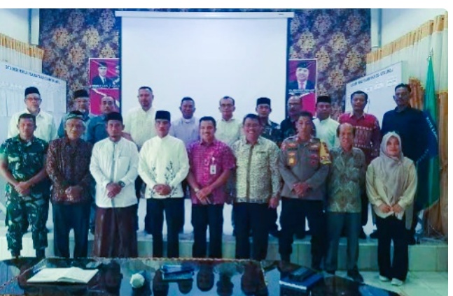 Pj Walikota Langsa Syaridin bersama Forkopimda peserta rapat FKUB, Jum’at (05/04/2024) di Aula Kesbangpol,