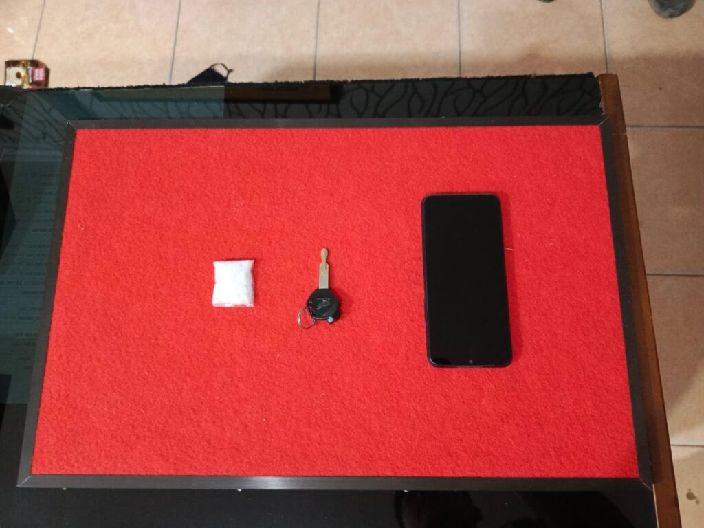 Saat diamankan, pelaku sempat hendak kabur melarikan diri dan membuang 1 paket sabu ketanah, namun berkat kejelian petugas barang bukti sabu berhasil diamankan.