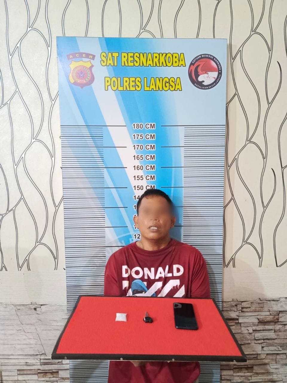 Seorang pria MGA (36), warga Gampong Jawa Kecamatan Langsa Kota diamankan Unit Opsnal Sat Resnarkoba Polres Langsa saat hendak melakukan transaksi sabu di pinggiran jalan Gampong Simpang Kebun, Kecamatan Langsa Timur.