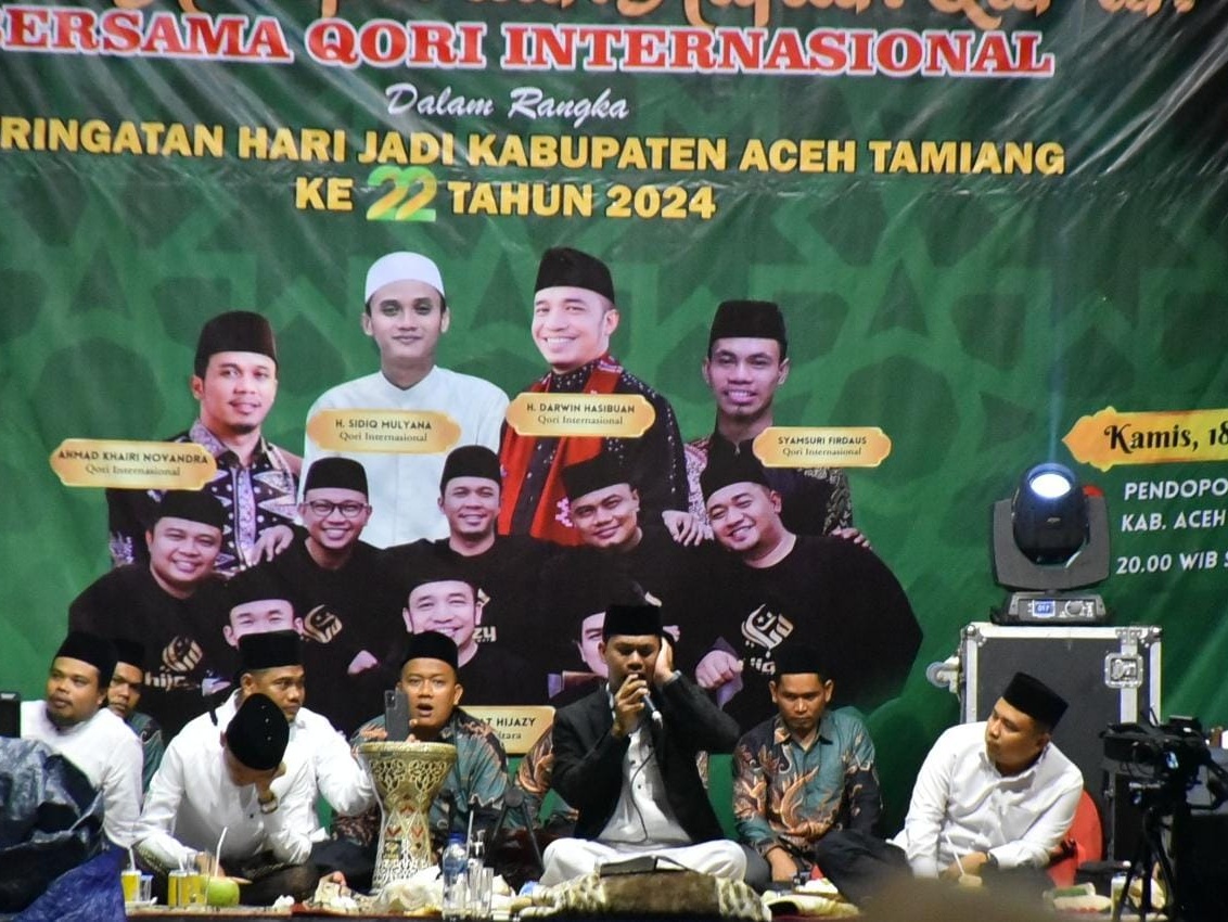 Prokopim : Malam puncak Resepsi HUT Kabupaten Aceh Tamiang ke-22 malam tadi, Kamis (18/4/24), dimeriahkan dengan tilawah Qur’an dan iringan Shalawat. Panggung yang menampilkan para qari internasional ini berhasil mempesona masyarakat yang menyaksikan parade Haflah Quran di Pendopo Bupati setempat.