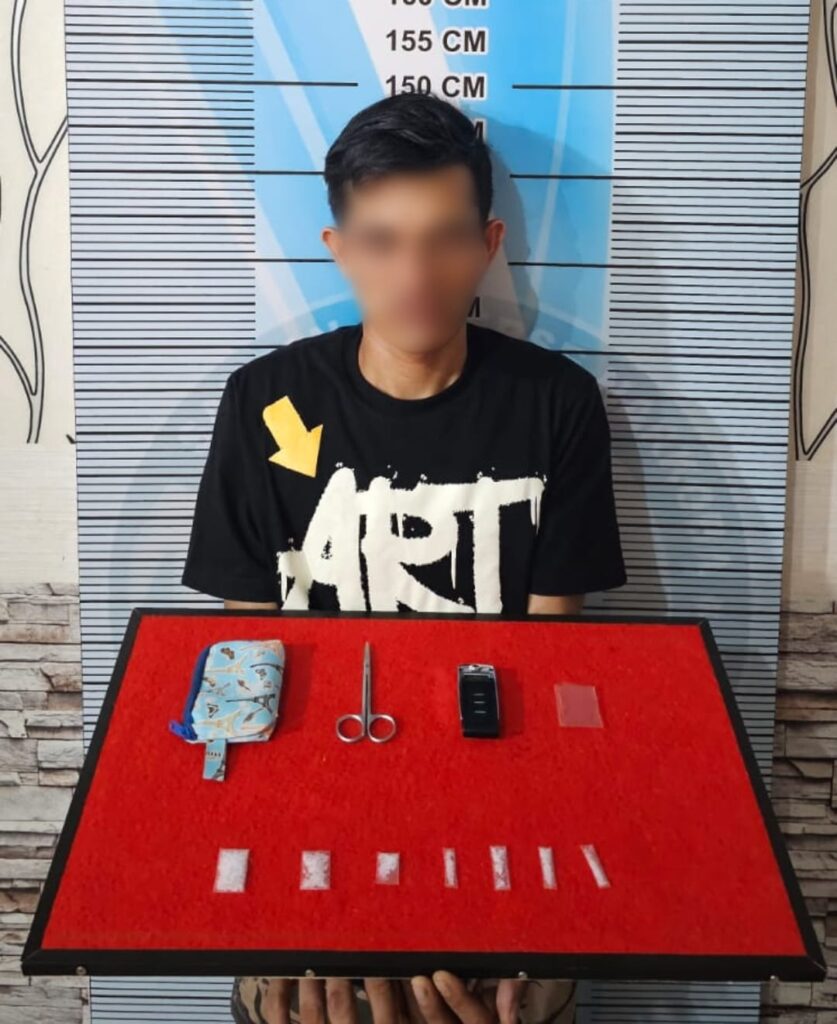 Adapun BB yang kita amankan 7 (tujuh) paket Sabu dengan berat keseluruhan 1,96 (satu koma sembilan puluh enam) Gram, 1 (satu) dompet warna biru, 1 (satu) timbangan digital warna hitam, 1 (satu) gunting dan 1 (satu) plastik tembus pandang.