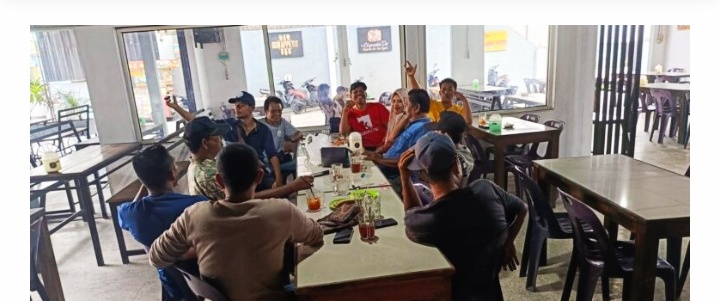Ketua umum terpilih Persatuan Wartawan Langsa (Perwal) periode 2024 – 2029, Chaidir Toweren bersama dengan Sekretaris dan para wakil ketua melaksanakan rapat perdana bersama pengurus di Cafe Ibam’s Jalan Ahmad Yani kota Langsa, Sabtu (27/04/2024).