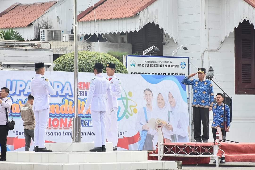 A1news.co.id|Bireuen– Pemkab Bireuen melalui Dinas Pendidikan dan Kebudayaan (Disdikbud), menggelar upacara memperingati Hari Pendidikan Nasional (Hardiknas) berlangsung, Kamis (2/5/2024) pagi dihalaman Pendopo Bupati setempat.