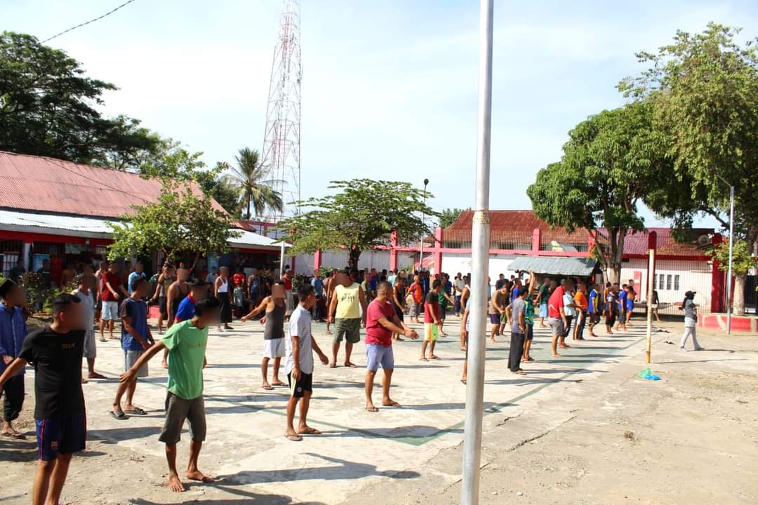 Seluruh warga binaan yang mengikuti senam terlihat begitu antusias mengikuti setiap gerakan yang diperagakan.