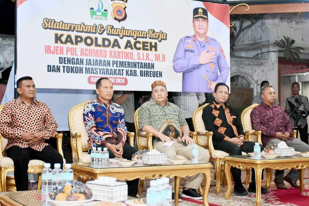 A1news.co.id|Bireuen– Pemkab Bireuen, menyambut kunjungan kerja Kapolda Aceh, Irjen Pol Achmad Kartiko, SIK MH beserta rombongan dengan jajaran pemerintahan dan tokoh masyarakat, dikemas dalam kegiatan silaturahmi yang berlangsung, Kamis (2/5/2024) malam di Gazebo Pendopo Bupati.