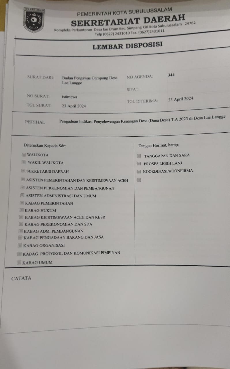 Dari hasil laporan masyarakat tersebut jelas tertuang poin apa saja yang mereka duga bahwa ada penyimpangan Anggaran Desa tahun 2023 yang merugikan masyarakat Lae Langge namun sampai saat belum ada jawaban,