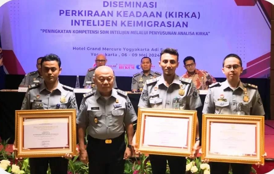 Piagam Penghargaan diserahkan langsung oleh Direktur Intelijen Keimigrasian Direktorat Jenderal Imigrasi, R.P. Mulya, yang sekaligus membuka kegiatan Diseminasi Perkiraan Keadaan (KIRKA) Intelijen Keimigrasian, Senin (06/05/2024),