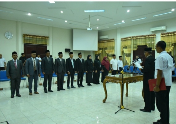 Prokopim : Pj. Bupati Aceh Tamiang, Drs. Asra, melakukan mutasi pejabat di lingkungan pemkab setempat. Rabu (8/5/24) siang tadi, 11 pejabat dilantik dan disumpah oleh Pj. Sekretaris Daerah, Drs. Tri Kurnia.