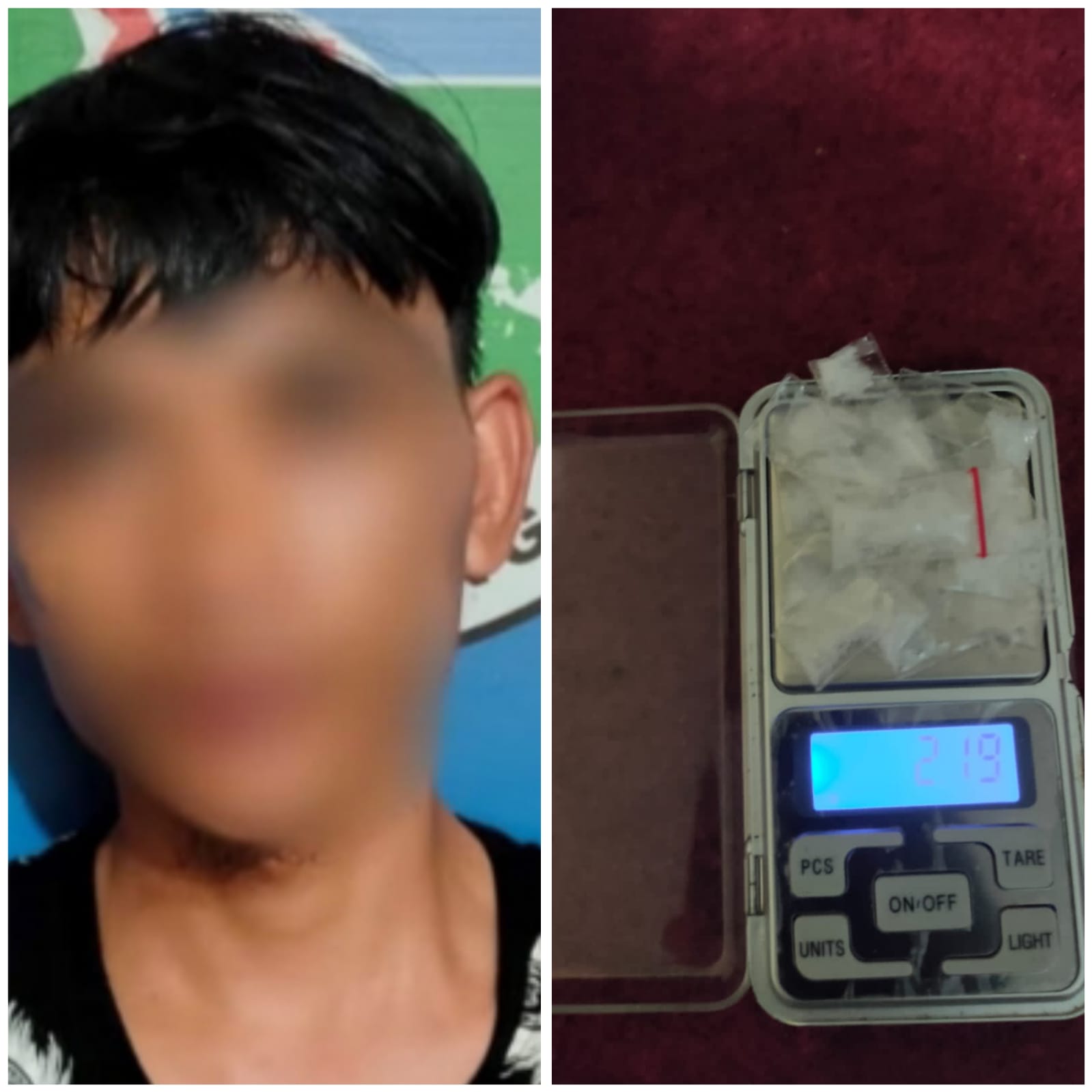“Setelah berhasil mengamankan terduga pelaku berinisial SM(27) yang merupakan Warga Desa Rimo di Warnet salah satu Warga di Desa Tunas Harapan kemudian petugas melakukan penggeledahan dan di dapati barang bukti berupa 23 Paket narkotika jenis Sabu dengan berat 2,19 gram, 1 buah sendok Pipet, uang sebesar 400.000 rupiah . ”