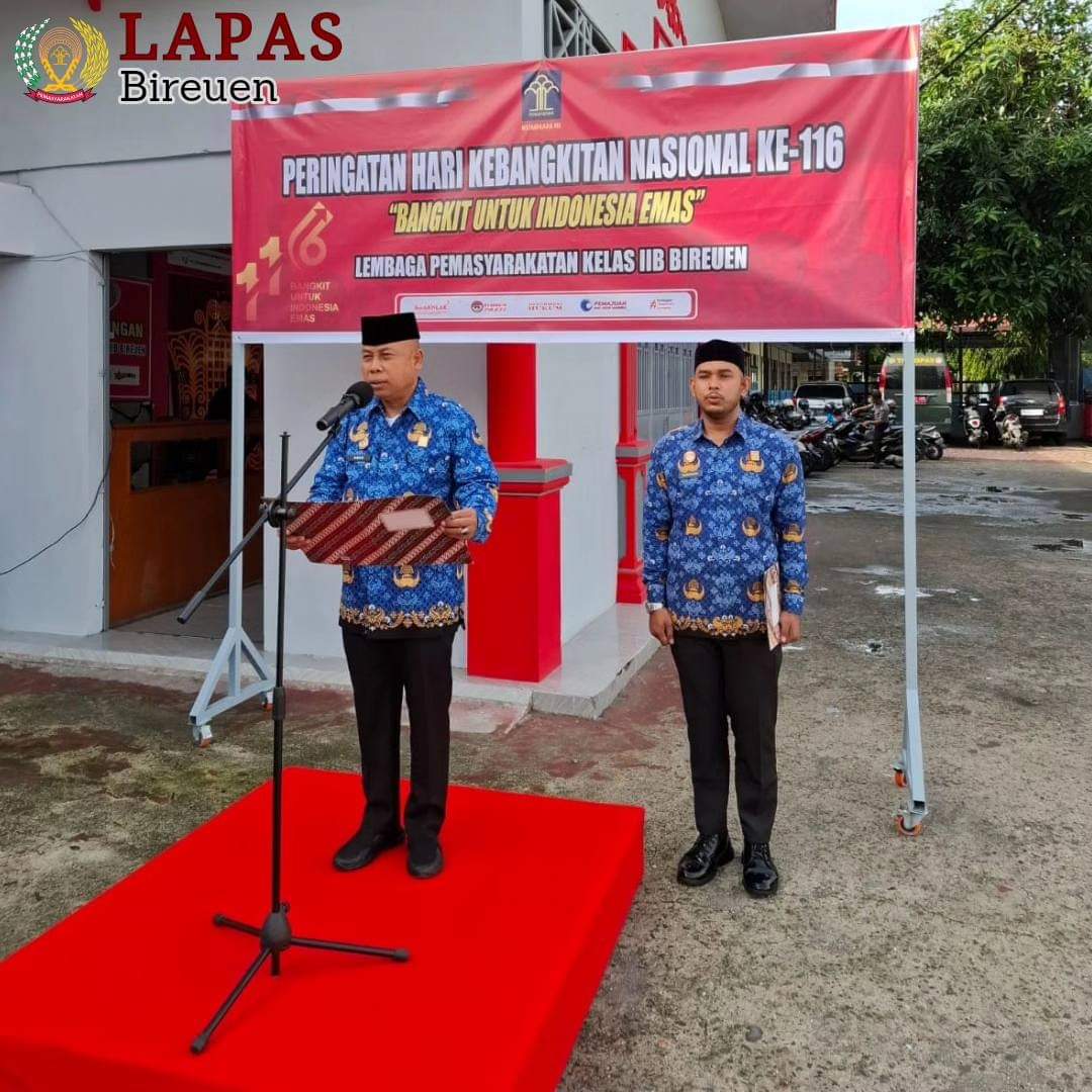 A1news.co.id|Bireuen– Lembaga Pemasyarakatan (Lapas) Kelas IIB Bireuen melaksanakan Upacara Bendera Peringatan Hari Kebangkitan Nasional ke-116 Tahun 2024 dengan tema “Bangkit Untuk Indonesia Emas”.