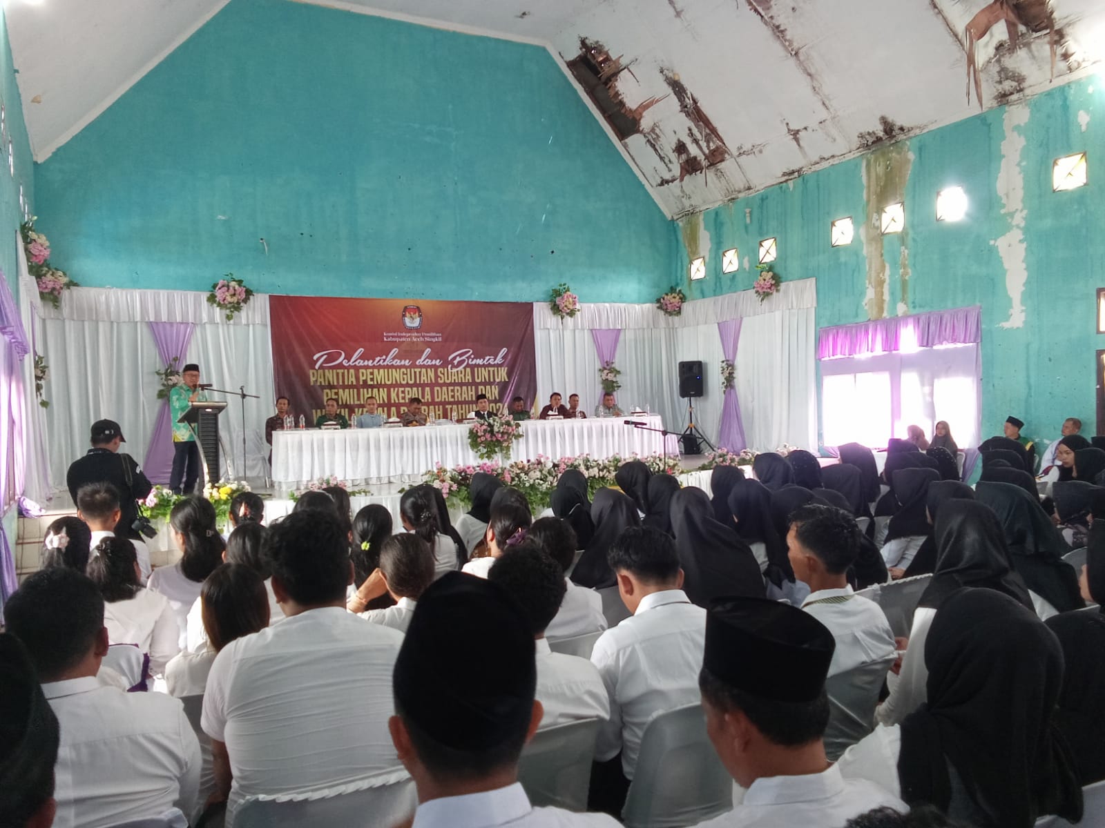 A1news.co.id|Aceh Singkil– Sebanyak 348 Panitia Pemungutan Suara (PPS) Aceh Singkil di lantik di gedung serba guna di Desa Pulo Sarok, Kecamatan Singkil ,26/5/2024.