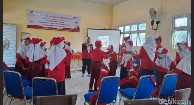 Disekolah dasar ini dikumpulkan anak murid kelas 4 dan 5 sebanyak 11 orang untuk diberi materi menyayangi orang tua yang sudah lanjut usia.