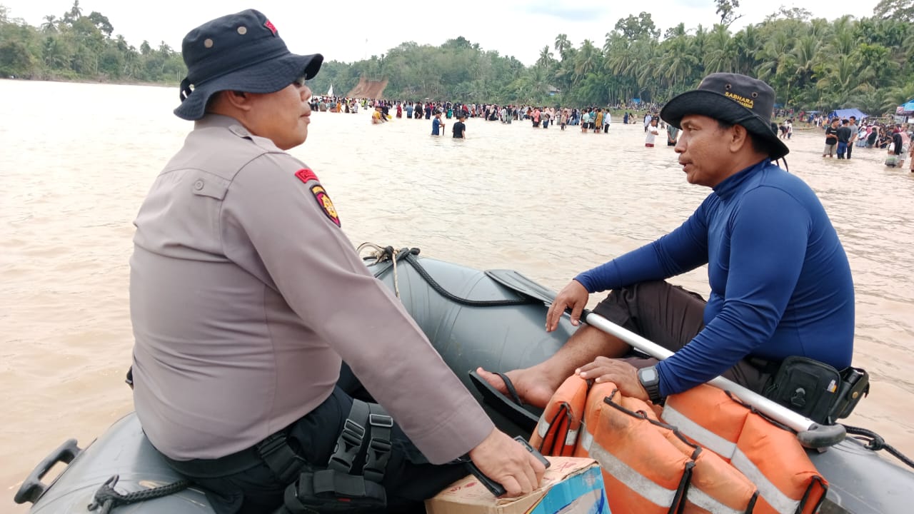 Personil Sat Samapta ditempatkan di berbagai titik strategis di sekitar arena pacu jalur untuk memastikan keamanan dan ketertiban para pengunjung.