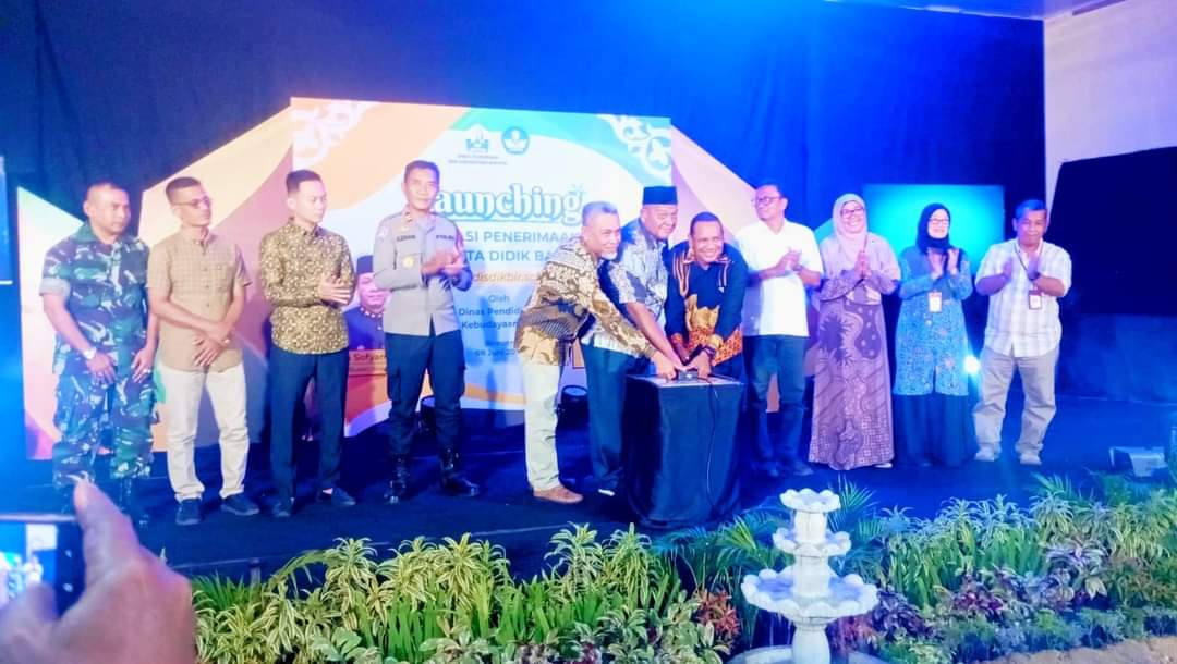 Plt Asisten III Setdakab Bireuen, Azhari, S.Sos dengan pejabat terkait menekan tombol pertanda dilaunching aplikasi PPDB jenjang SD/SMP tahun ajaran 2024/2025, Sabtu (8/6/2024) pagi, di Aula Disdikbud. (Red)
