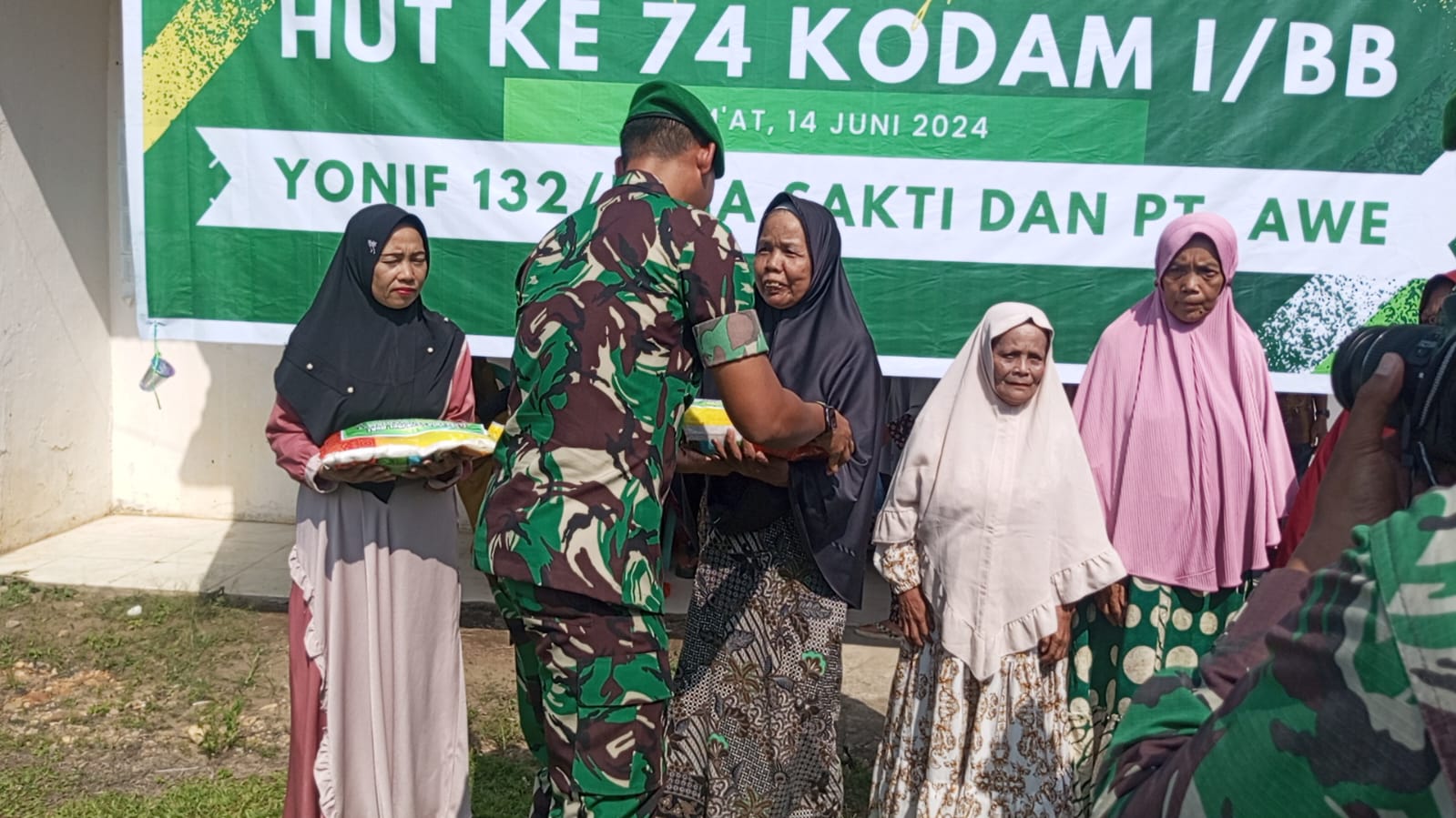 A1news.co.id|Kampar – Komandan Ifanteri 132/Salo mempelopori kesulitan kesulitan masyarakat dan kehadirannya untuk memberikan sembako kepada masyarakat kurang mampu pada Hari Ulang Tahun Kodam Satu Bukit Barisan.