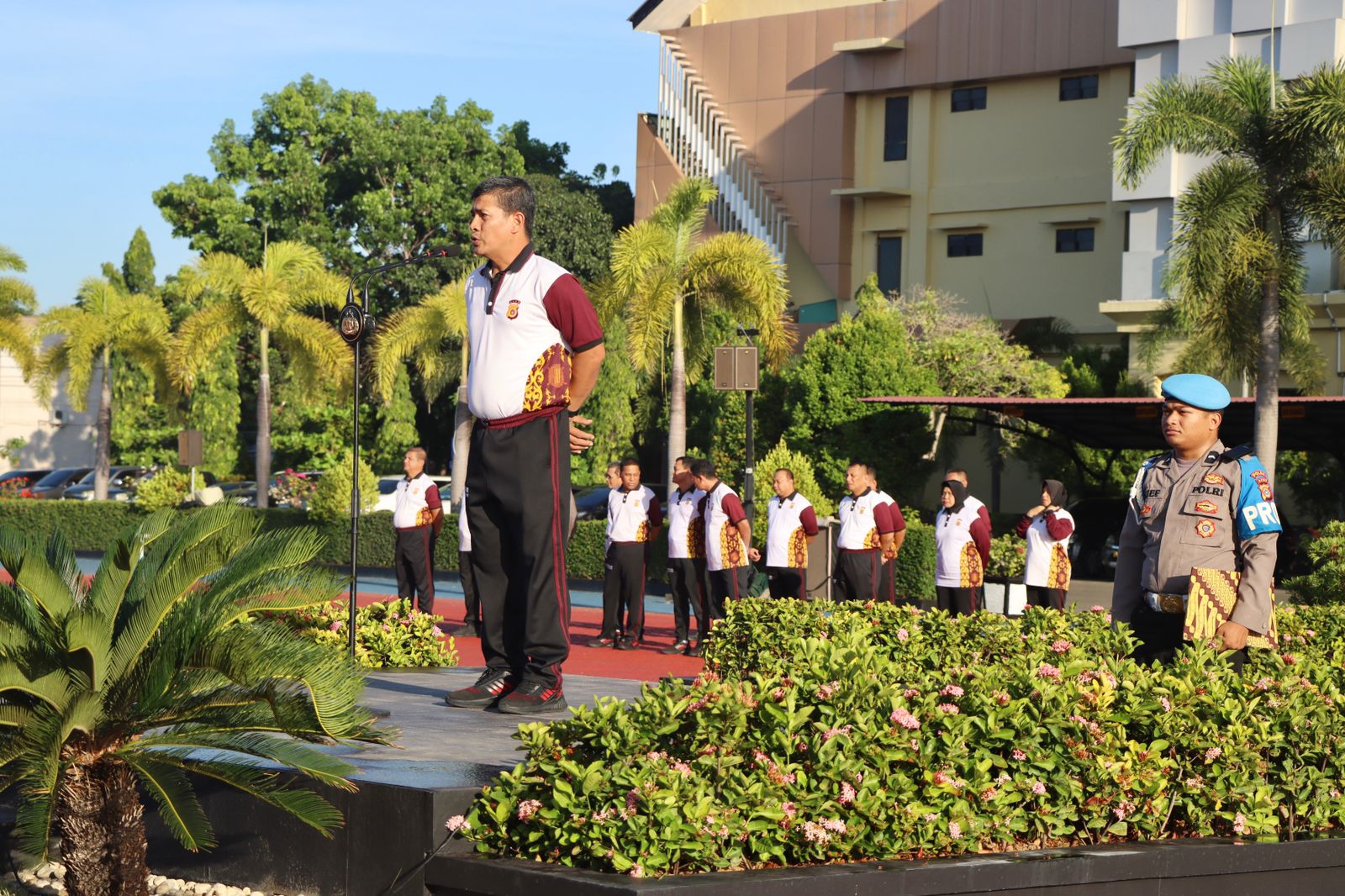 Apel pagi di lapangan Mapolda Aceh dihadiri Wakapolda Aceh, para PJU, Pamen, Pama, Bintara, Tamtama dan ASN Polda Aceh. Seusai apel dilanjutkan dengan olahraga bersama.(SM)