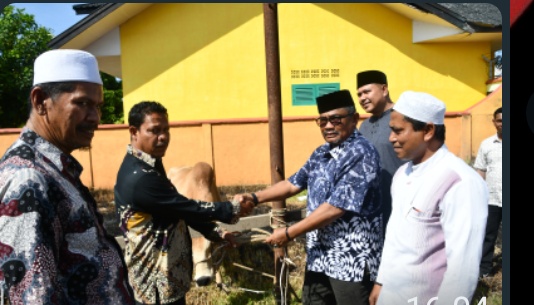 Hewan kurban diserahkan oleh Sekretaris Daerah kota Langsa, Said Mahdum Majid di lapangan dusun pendidikan Gampong Paya Bujok Seuleumak kecamatan Langsa Baro, Sabtu (15/06/24).