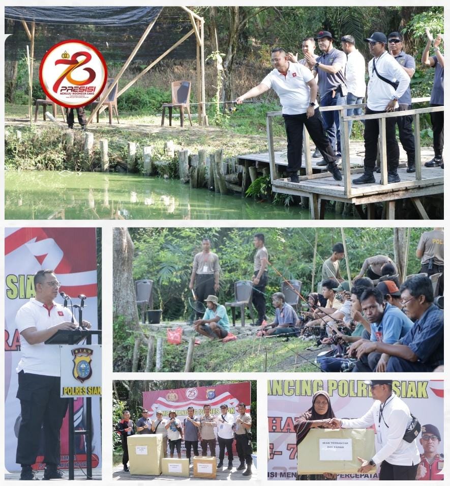 A1news.co.id|Siak– Memeriahkan hari Bhayangkara ke-78, Kepolisian Resor (Polres) Siak mengelar lomba mancing, kegiatan tersebut dilaksanakan di Taman kolam Presisi Polres Siak, Kecamatan Dayun, Kabupaten Siak, Sabtu (15/6/2024).