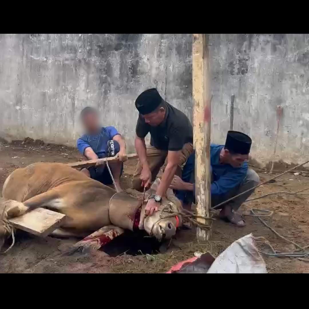 Pemotongan Hewan kurban dilakukan usai melakukan salat Idul Adha yang disembelih langsung Oleh Kepala Rutan Takengon, Husni. didampingi Pejabat Struktural dan Petugas Rutan Takengon.