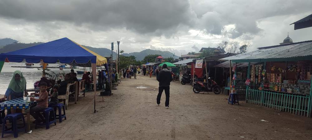 Sementara itu, seorang pedagang lokal Basri di objek wisata menjelaskan bahwa ini hari lumayan rame pengunjung objek wisata tulisan Danau Lut Tawar.