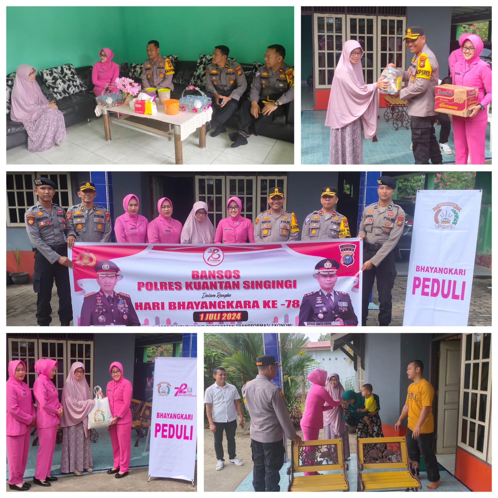 A1news.co.id|Kuansing– Polres Kuansing melaksanakan kegiatan bantuan sosial kepada purnawirawan dan warakauri dalam rangka memperingati Hari Bhayangkara ke-78.