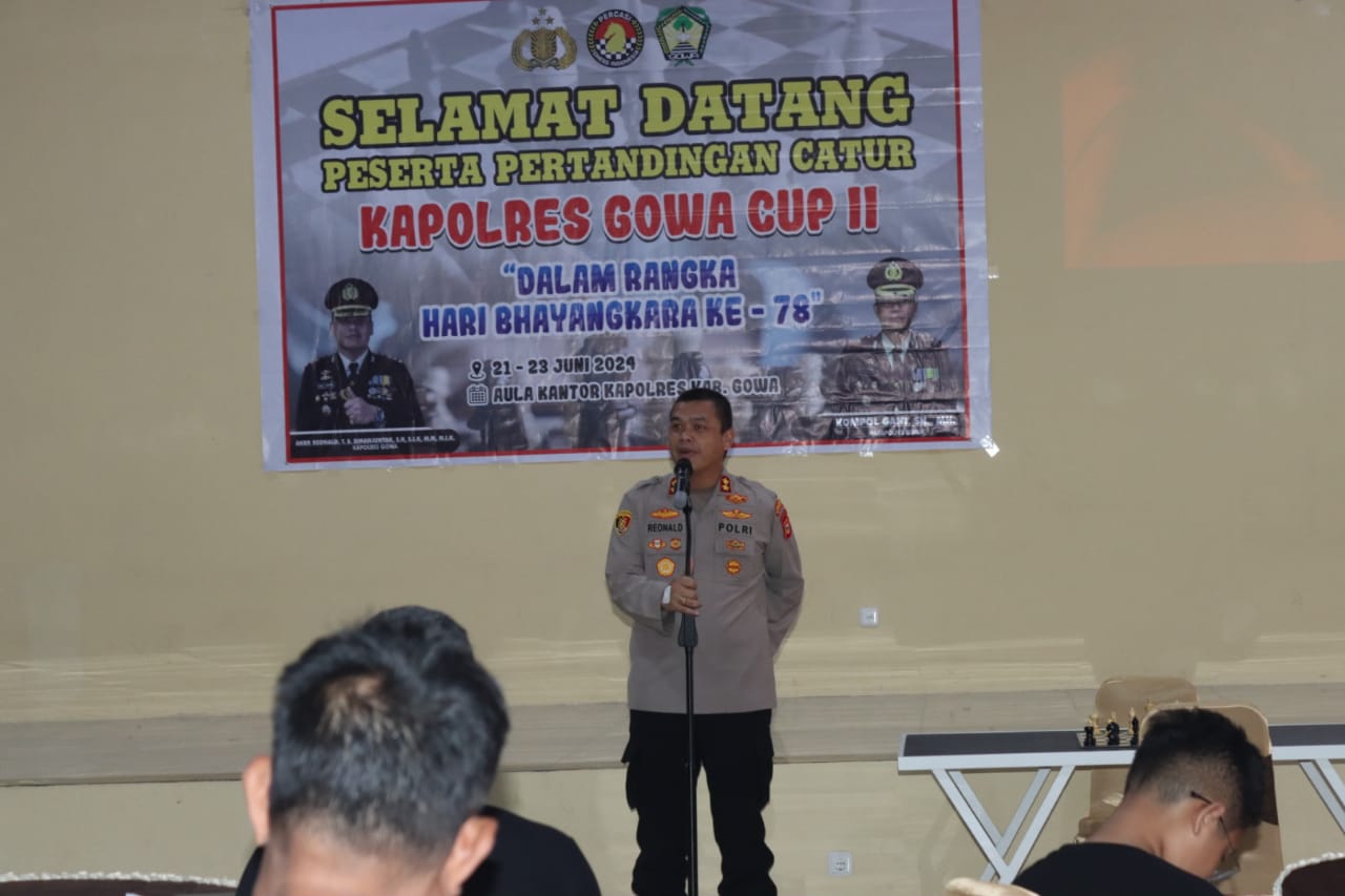 A1news.co.id|Gowa– Dalam rangka memeriahkan Hari Ulang Tahun (HUT) Bhayangkara yang ke-78 tahun 2024, Polres Gowa menggelar Pertandingan Catur “Kapolres Gowa CUP II” yang gelar di Aula Rewako Wicaksana Laghawa, Polres Gowa, Jum’at (21/06/2024).