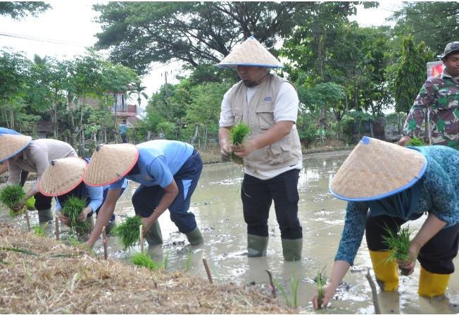 Pj Bupati Aceh Besar Tanam Padi Bersama Danlanud SIM Di Blang Bintang