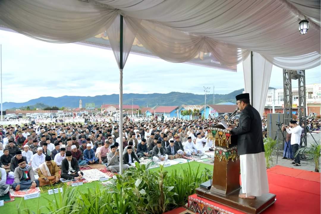 Mengawali sambutanya pada Hari Raya Idul Adha 1445 H, Pj. Bupati Haili Yoga mengatakan, atas nama pribadi dan keluarga, serta segenap jajaran Pemkab Bener Meriah mengucapkan selamat hari raya idul Adha 1445 Hijriyah, ” minal Aidin walfaizin mohon maaf lahir batin,” ucapnya.