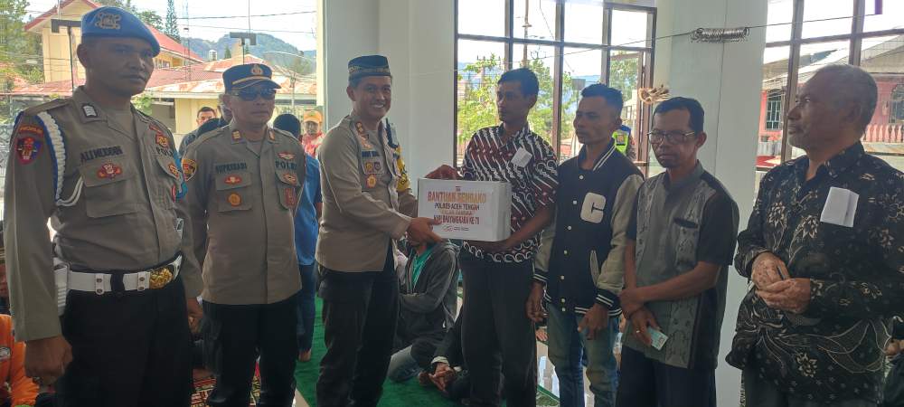 A1news.co.id|Takengon– Menyambut Hari Uang Tahun Bayangkara ke 78, Polres Aceh Tengah melaksanakan kegiatan bagi sembako kepada masyarakat tidak mampu, beasiswa bagi siswa SMP dan SMA berprestasi di sekolah dan Rumah layak huni bagi dua masyarakat di dua Kecamatan di kabupaten Aceh Tengah.