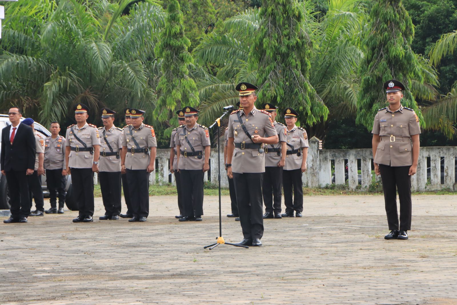 Upacara dipimpin langsung Kapolres Banyuasin AKBP Ferly Rosa Putra SIK dan dihadiri oleh Wakapolres Banyuasin Kompol Adriansyah SE SIK, PJU polres banyuasin beserta anggota
