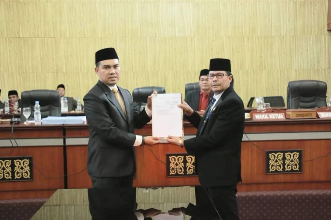 Selanjutnya rancangan peraturan daerah ini akan kami sampaikan kepada gubernur selaku wakil pemerintah pusat untuk dievaluasi sebelum ditetapkan menjadi peraturan daerah sekaligus juga menjadi salah satu bahan penting bagi kami untuk dapat segera mengajukan PAPERDA tentang perubahan APBD tahun anggaran 2023,” ucap Khairmansyah.