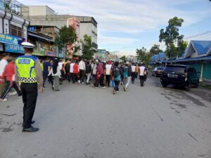 A1news.co.id|Takengon– Satuan Lalu Lintas Polres Aceh Tengah Melaksanakan Pengamanan dan Pengaturan lalu lintas pada kegiatan Gerak Jalan Santai Polres Aceh dalam rangka memeriahkan HUT Bhayangkara ke-78.