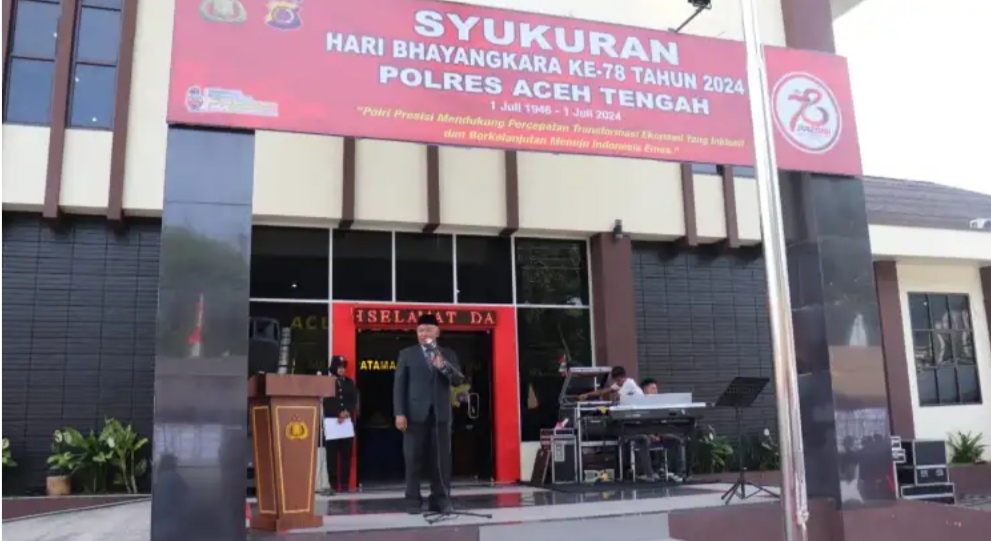 A1news.co.id|Takengon– Sekretaris Daerah Kab. Aceh Tengah Subhandhy, AP, M.Si menghadiri acara Syukuran HUT Bhayangkara ke-78 yang digelar di halaman Mapolres Aceh Tengah, Senin (01/07/2024).