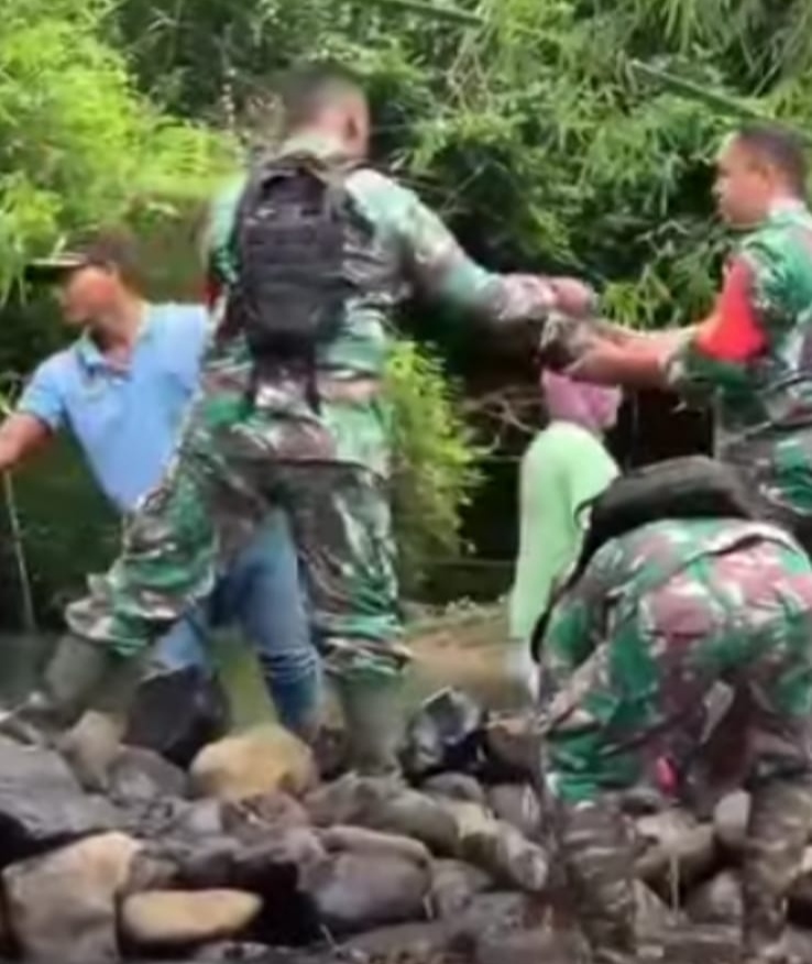 A1news.co.id|Aceh Utara– Dengan menggunakan alat berat personel dari Kodim 0103 Aceh Utara bergotong royong bersama masyarakat Teupin Reusip kecamatan Sawang Aceh Utara memperbaiki tanggul irigasi (Embung) yang selama ini rusak akibat banjir sehingga lahan sawah warga kekurangan air.