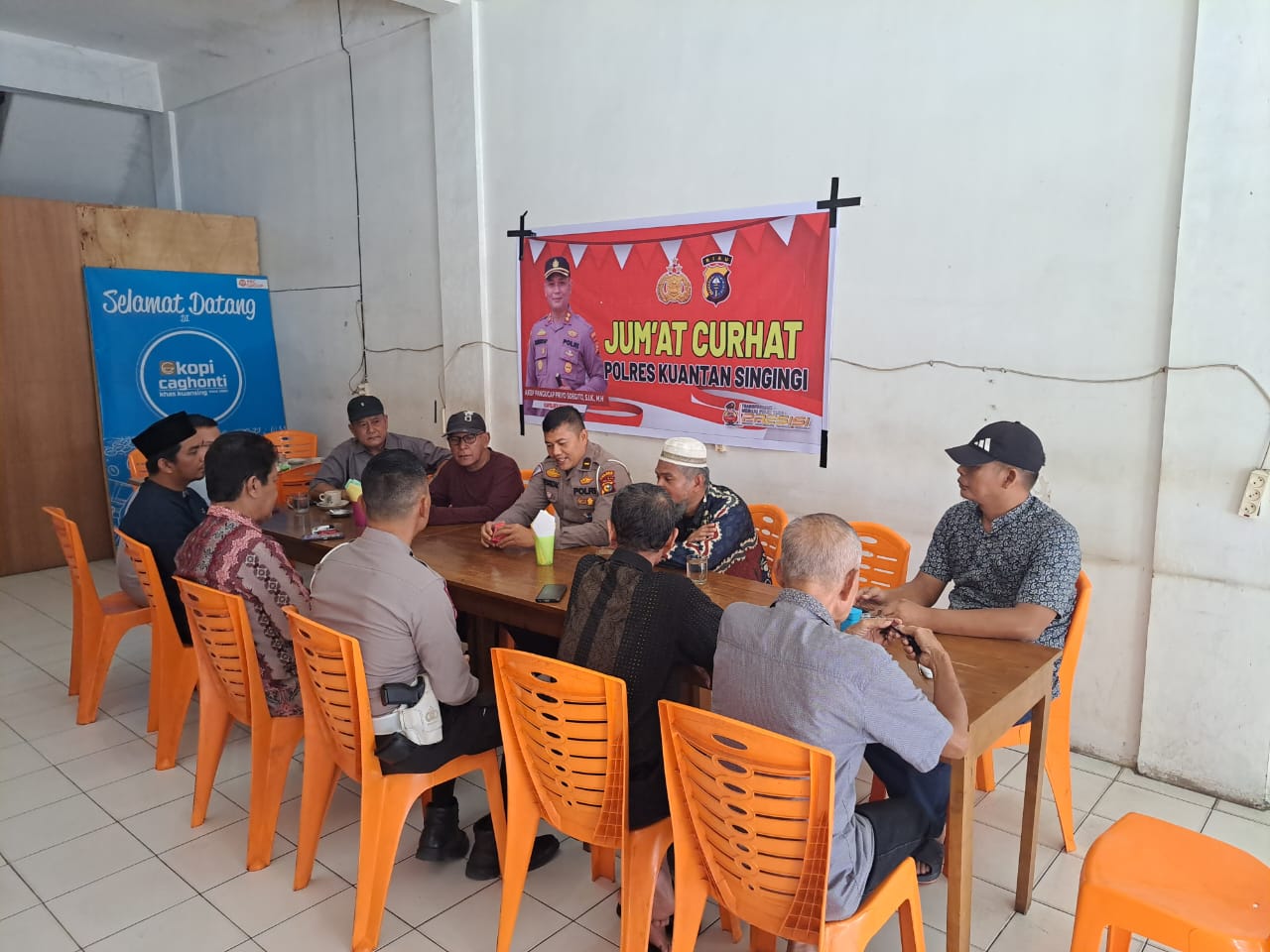 A1news.co.id|Kuansing– Polres Kuantan Singingi (Kuansing) mengadakan kegiatan “Jum’at Curhat” yang dilaksanakan oleh Sat Lantas Polres Kuansing bertempat di Kedai Kopi Caghonti, Kecamatan Kuantan Tengah, Kabupaten Kuansing. Pada hari Jumat (12/7/2024) pukul 08.30 WIB.