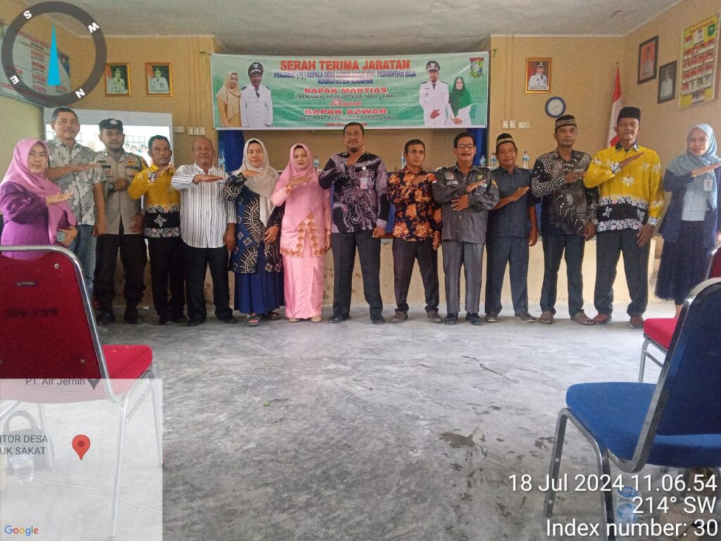 ” Pelaksanaan sertijab antara Bapak martias dan Bapak azwar dari pejabat kepala desa lama kepada pejabat kepala desa yang baru berjalan dengan harmonis ” Turut di hadiri oleh Camat Perhentian Raja Bapak Agus Wijayana Beserta rombongan dan Staf , ketua BPD, LPM , Bhabinkamtibmas, Ninik mamak, kadus , RT, RW, dan tokoh masyarakat