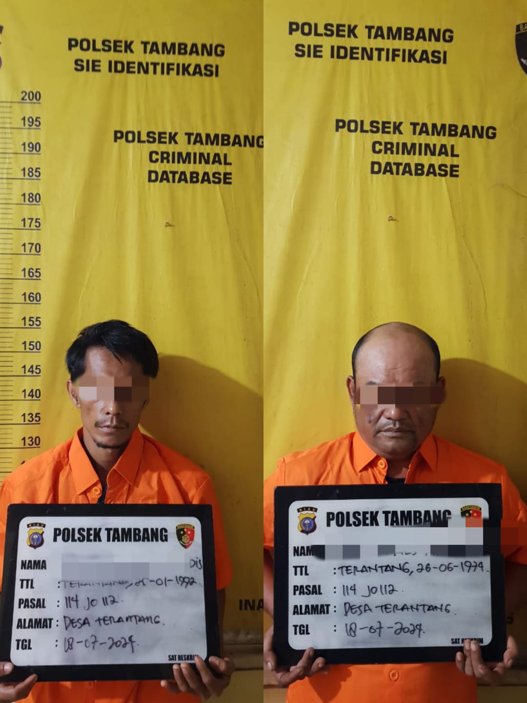 A1news.co.id|Kampar – Jajaran Polsek Tambang berhasil mengamankan 2 orang pelaku Narkoba jenis sabu-sabu, yaitu AN (32) dan AR (50) warga Desa Terantang Kecamatan Tambang, Kabupaten Kampar, Kamis (18/7/2024) sekira pukul 03.00 Wib.
