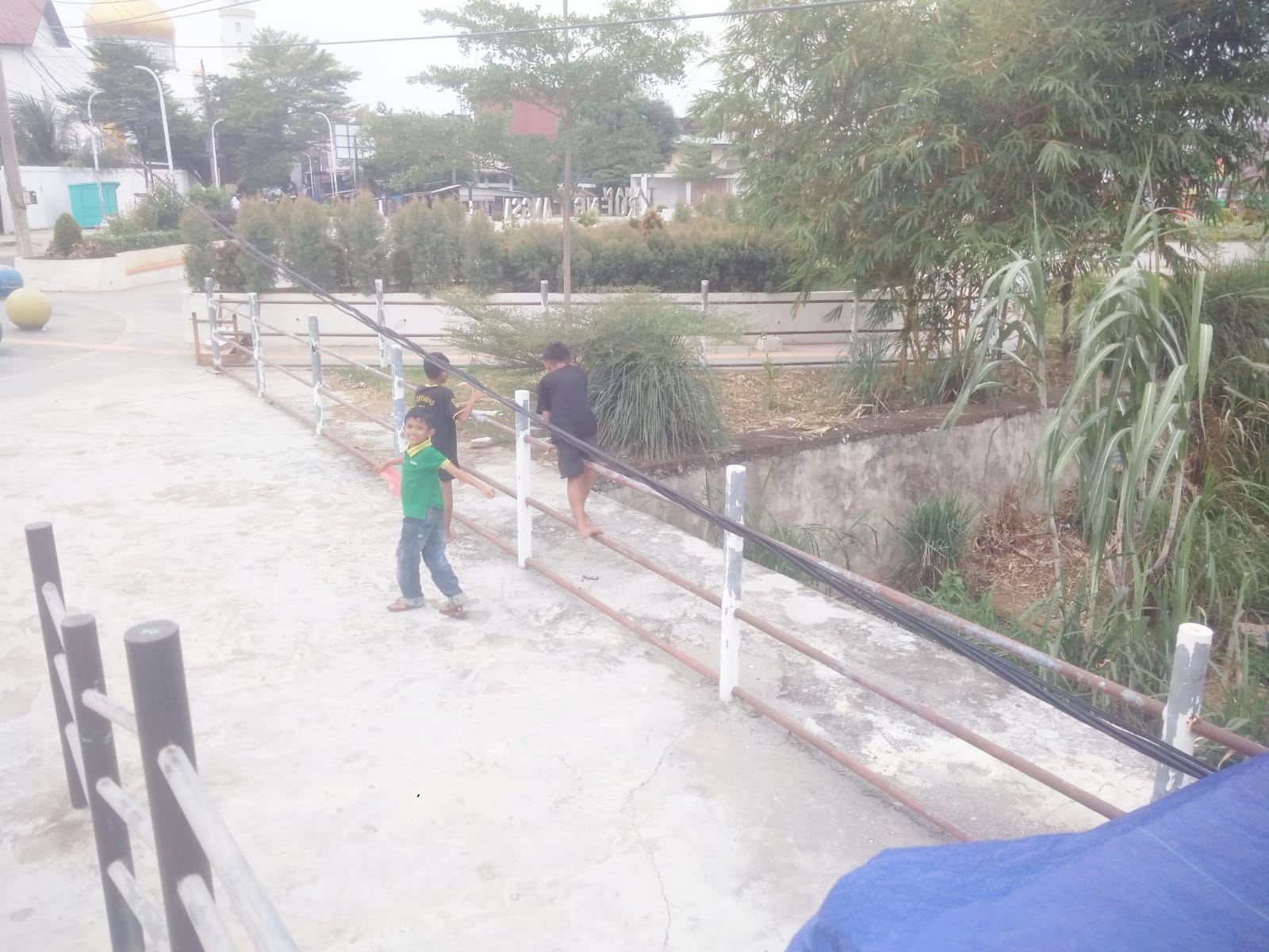 Sorotan awak media disaat terlintas melihat 3 orang anak anak bermain di taman krueng langsa, dibawah kabel PLN kota langsa, sekira 15,20 wib sore.