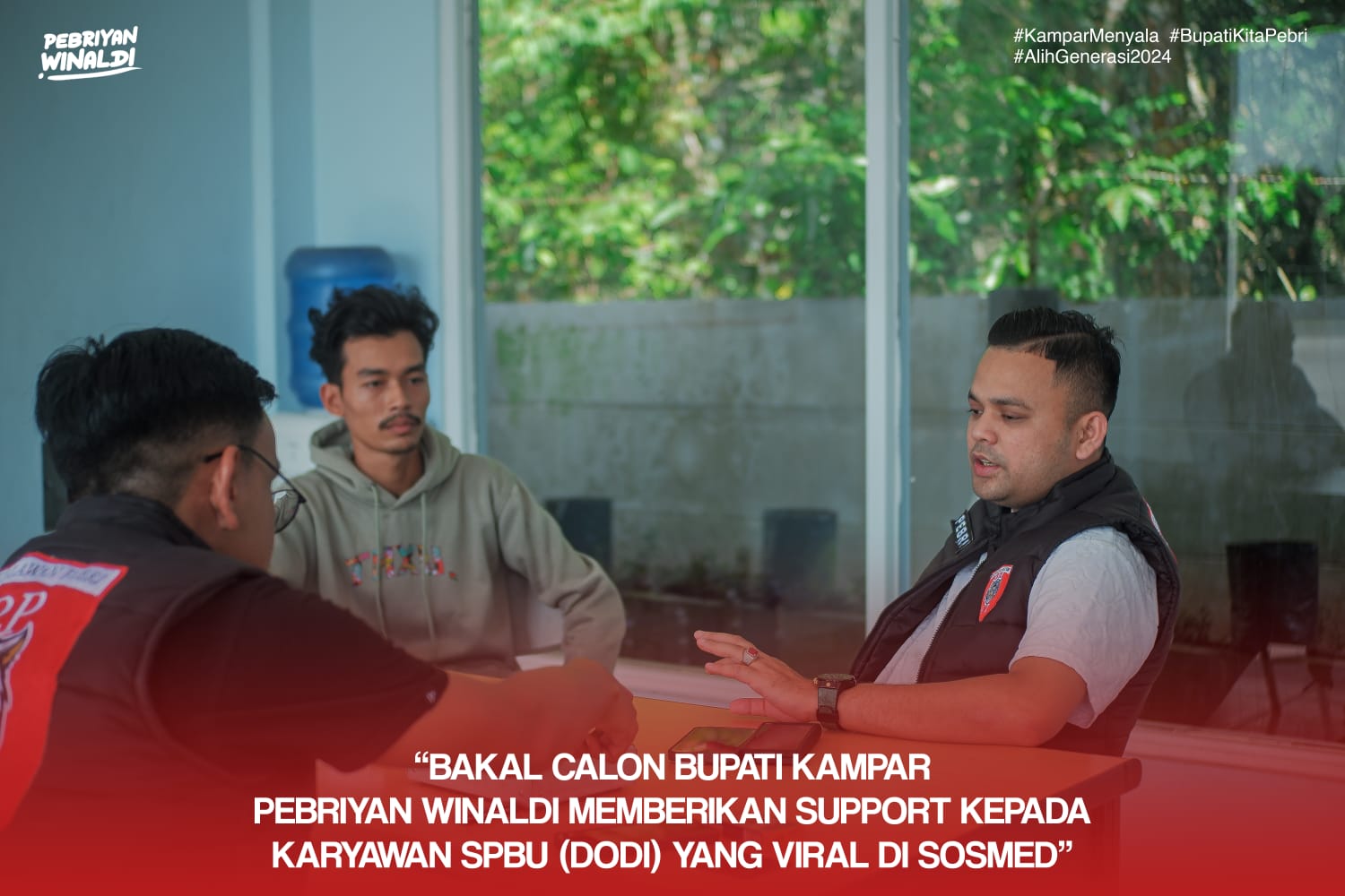 A1news.co.id|Kampar– Bakal calon Bupati Kampar, Pebriyan Winaldi menemui seorang petugas SPBU yang viral di media sosial.