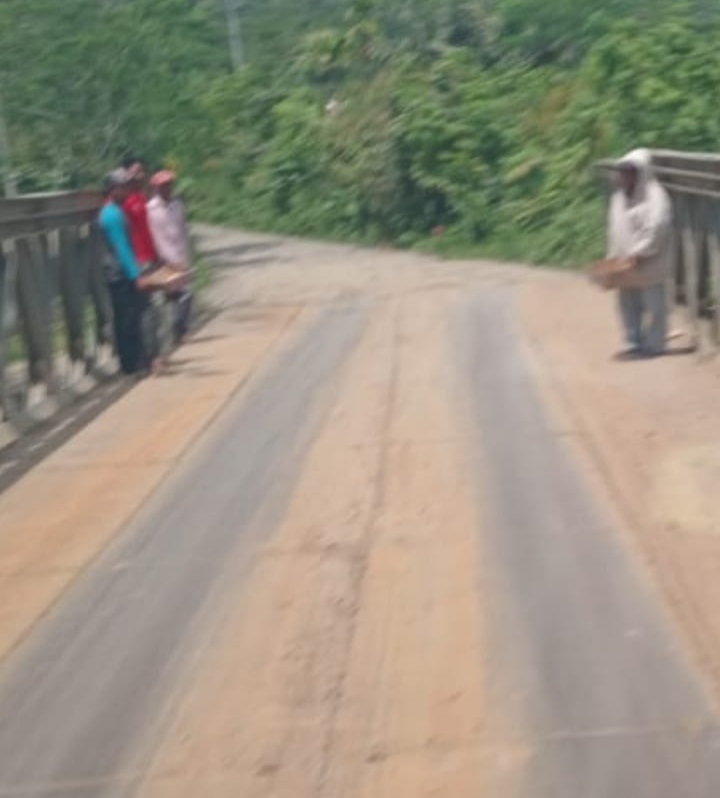 A1news.co.id|Aceh Utara– Jalan Gunung salak dalam wilayah kecamatan Nisam Antara Kabupaten Aceh Utara yang menghubungkan Kabupaten Bener Meriah rusak parah membuat pasukan pak ogah minta sedekah sepanjang jalan Gunung Salak yang rusak diujung jembatan besi.