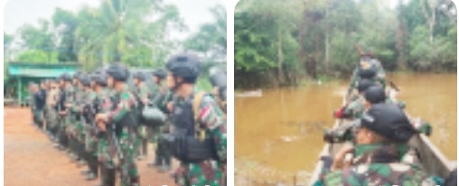 Terlihat anggota TNI dari Satgas Pamtas Statis RI-PNG Yonif 111/KB dan Tim semangat dalam melaksanakan kewajiban tugasnya demi pengabdian kepada bangsa dan negara di wilayah penugasan Perbatasan Papua Selatan.(Hen)