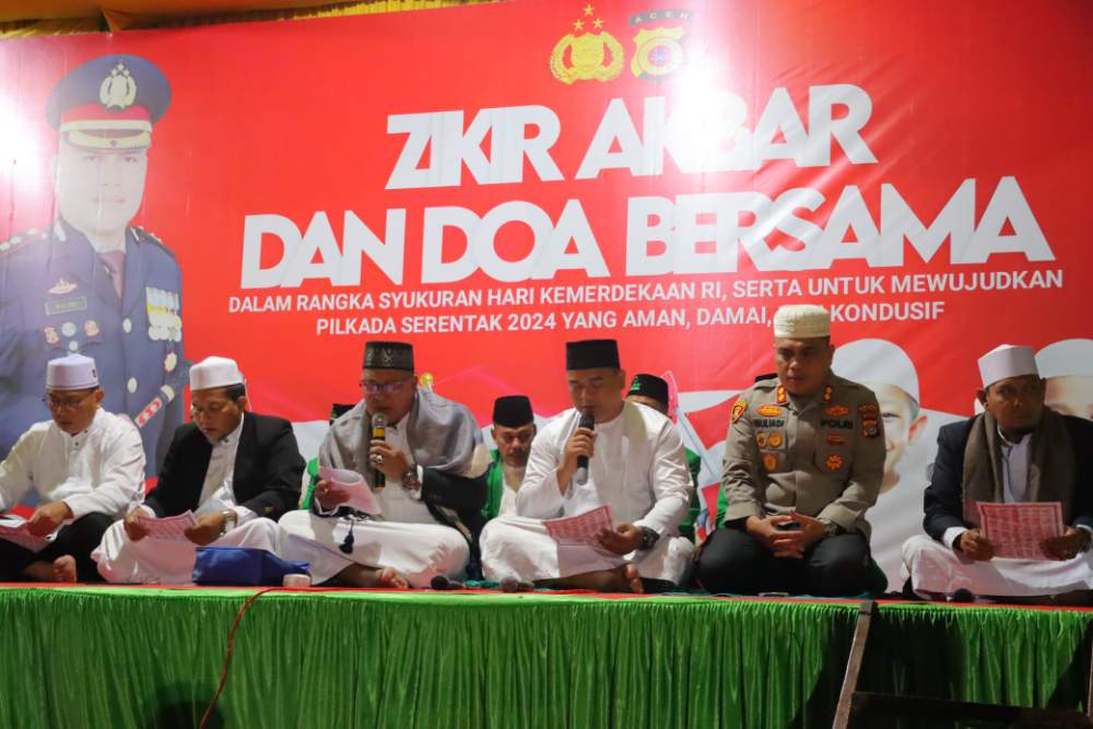 A1news.co.id|Banda Aceh– Kepolisian resort (Polres) Aceh Tamiang menggelar zikir akbar dan doa bersama dalam rangka syukuran Hari Kemerdekaan RI di Mapolres setempat, Selasa, 13 Agustus 2014.