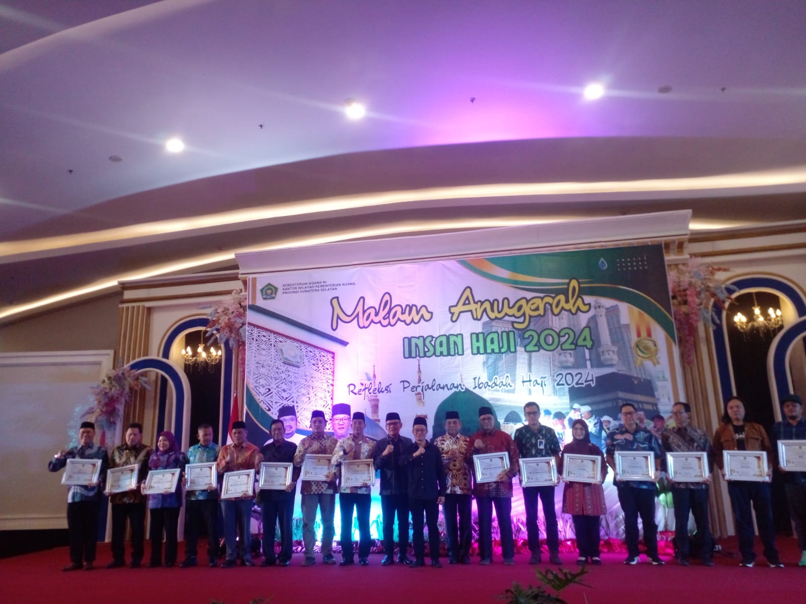 A1news.co.id|Palembang– Sebagai wujud apresiasi kepada para insa haji tahun 2024, Kantor Kementrian Agama (Kemenag) Sumatera Selatan (Sumsel) menggelar acara Malam Penganugrahan Insan Haji tahun 2024, dan Refleksi Perjalanan Haji di Hotel Beston Palembang, Selasa (13/08/2024).