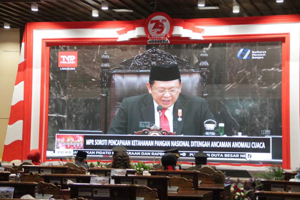 Oleh sebab itu, saya sangat menghargai, sangat mengapresiasi dukungan dan kerja sama seluruh Lembaga Negara dalam menopang lompatan kemajuan Indonesia. Mulai dari MPR RI yang telah berperan aktif memperkokoh ideologi negara, memperdalam rencana penyusunan Pokok-Pokok Haluan Negara, dan menjaga silaturahmi antartokoh bangsa.