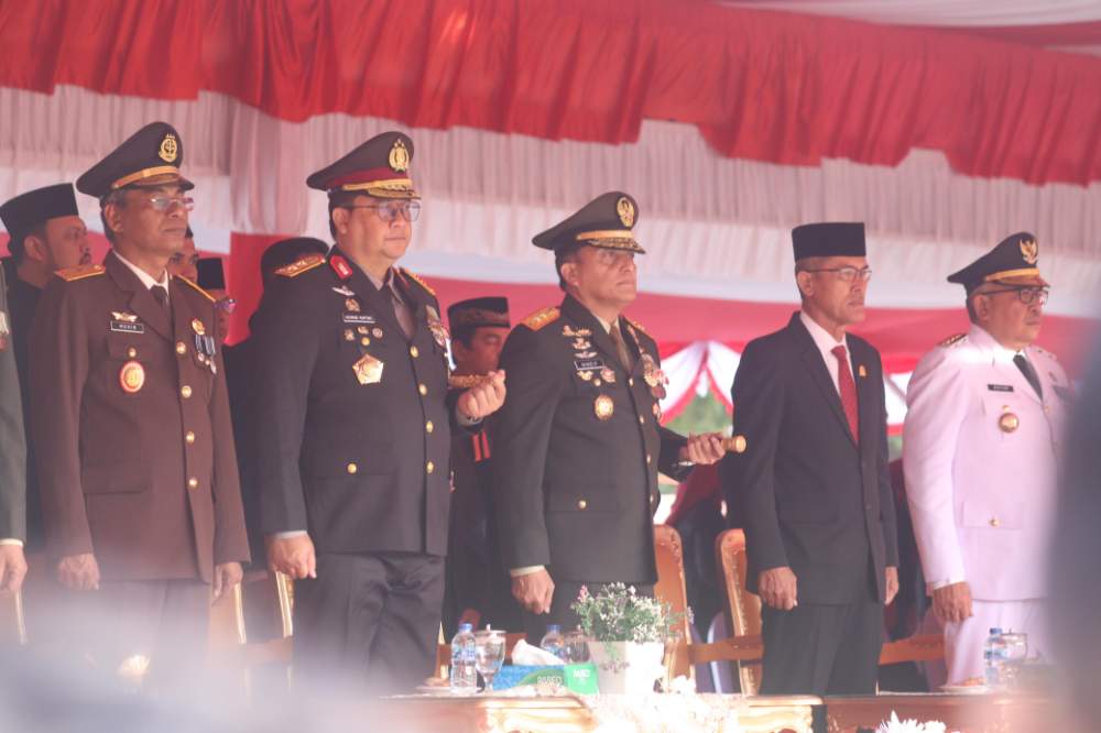 A1news.co.id|Banda Aceh – Kapolda Aceh Irjen Achmad Kartiko bersama Pejabat Forkopimda mengikuti upacara bendera dalam rangka hari ulang tahun (HUT) ke-79 Republik Indonesia di Lapangan Blang Padang, Kota Banda Aceh, Sabtu, 17 Agustus 2024.