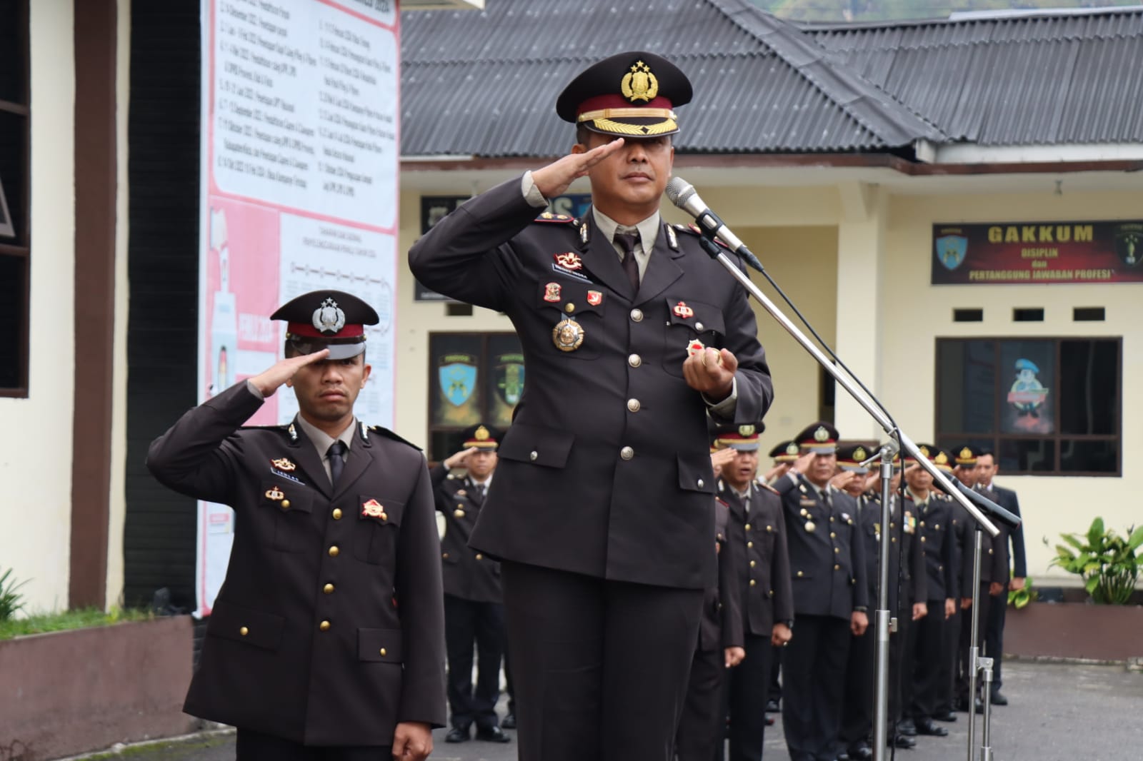 Upacara yang berlangsung khidmat ini, dipimpin langsung oleh Kapolres Aceh Tengah Akbp Dody Indra Eka Putra,S.I.K,M.H, serta diikuti Waka Polres, Para PJU, perwira staf dan personel Polres Aceh Tengah.