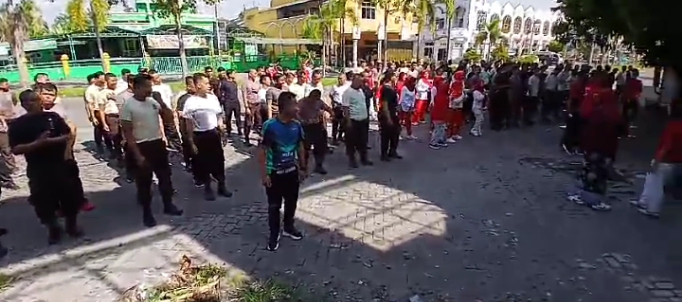 Tampak disaat dilakukannya senam pagi ‘Poco-Poco’ di Kantor PT. TSL Komplek Padang Hijau – Diski, Kec. Sunggal, Kab. Deli Serdang, Provinsi Sumatera Utara.